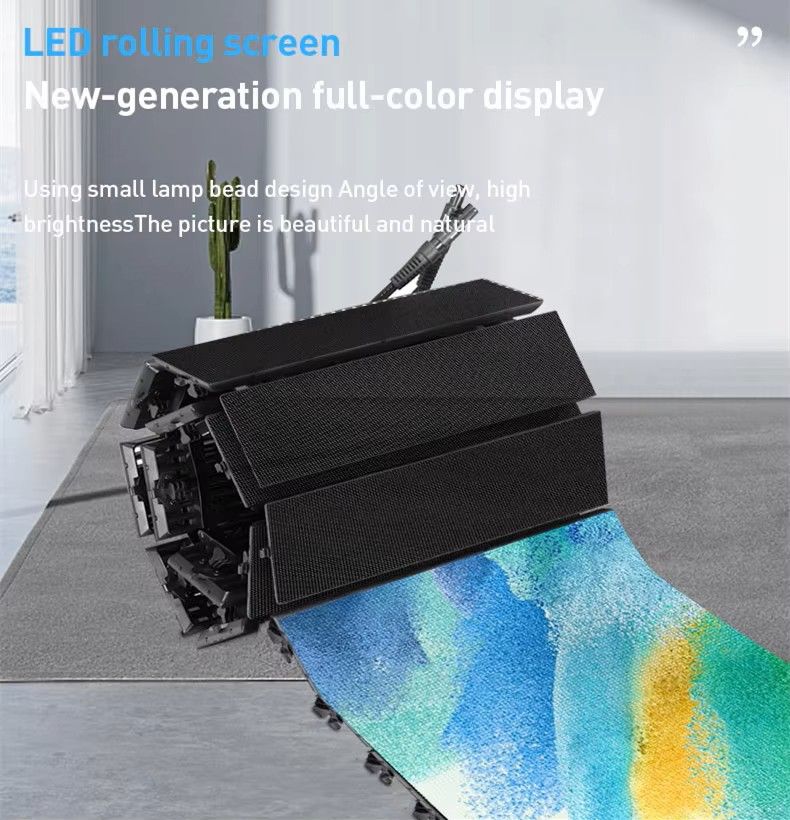 Rolling Floor Display is designed for replacing the conversional LED Floor Screen, which can be installed as simple as laying a carpet. Without PC mask, LED Rolling Floor Display can get the more excellent appearance and display effect in high contrast, and comparing with the conversional LED Floor screen, it is without the splicing gap problem, better flatness and integrity.